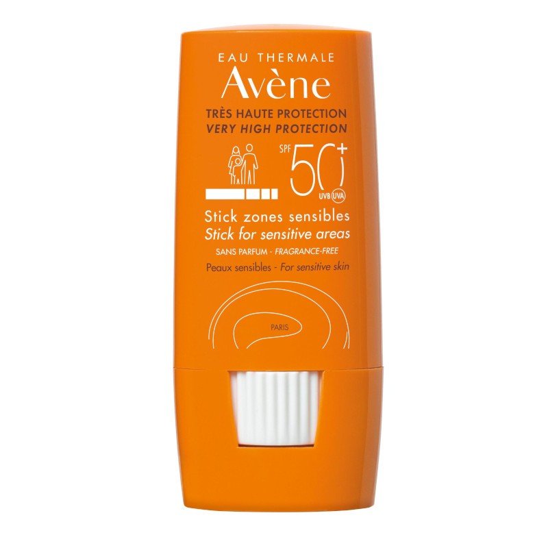 Avène Sun stik SPF 50+ pruža vrlo visoku zaštitu od UVA i UVB zračenja za osjetljive i izložene djelove kože. Praktičan je za nanošenje, ne ostavlja bijele tragove i idealan je za usne, nos, uši i ožiljke.