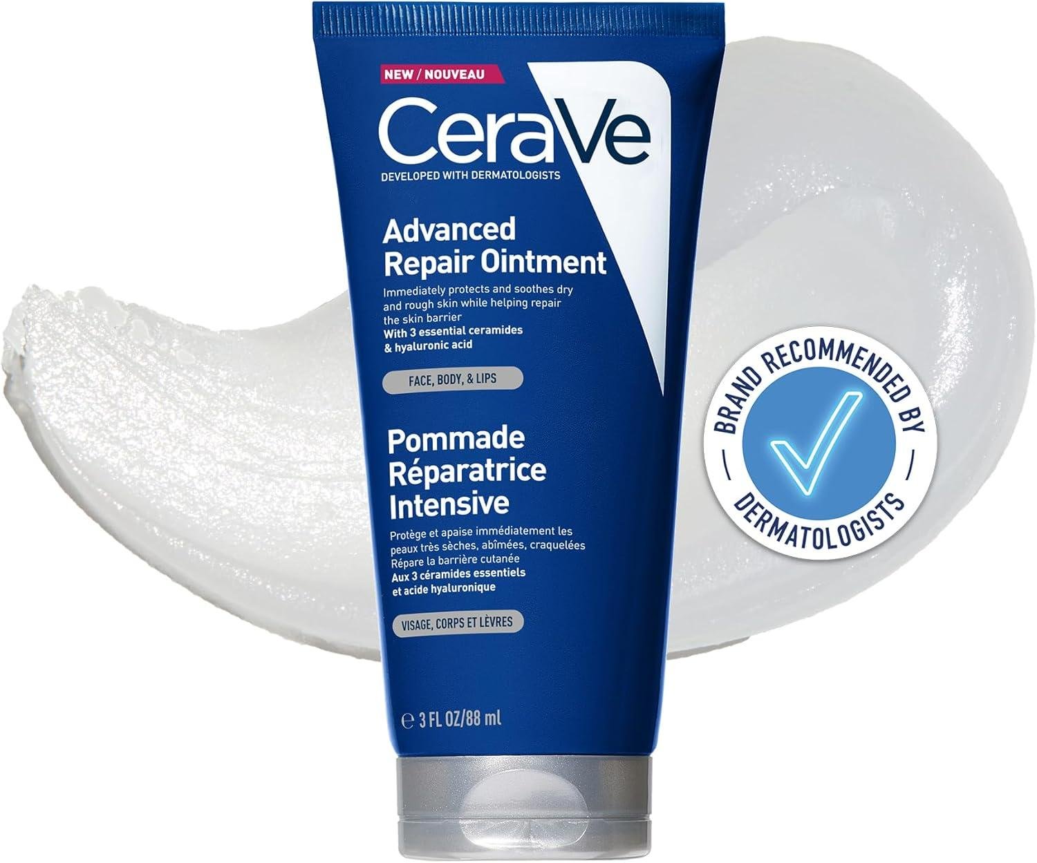 CERAVE, ADVANCED REPAIR OINTMENT, napredna obnavljajuća mast, namijenjena ispucaloj, gruboj ili izrazito suvoj koži je potrebna posebna njega. Napredna obnavljajuća mast pomaže hidrataciju, umiruje kožu. Mast formulisana sa vazelinom, hijaluronskom kiselinom i ceramidima pruža dodatnu hidrataciju i pomaže obnavljanje kožne barijere, istovremeno pružajući privremenu zaštitu i olakšanje suvoj, gruboj ili ispucaloj koži. Upotreba: Po potrebi, nanesite prije odlaska u krevet da biste zadržali vlagu u koži dok spavate i obezbjedili hidrataciju tokom cijele noći.
