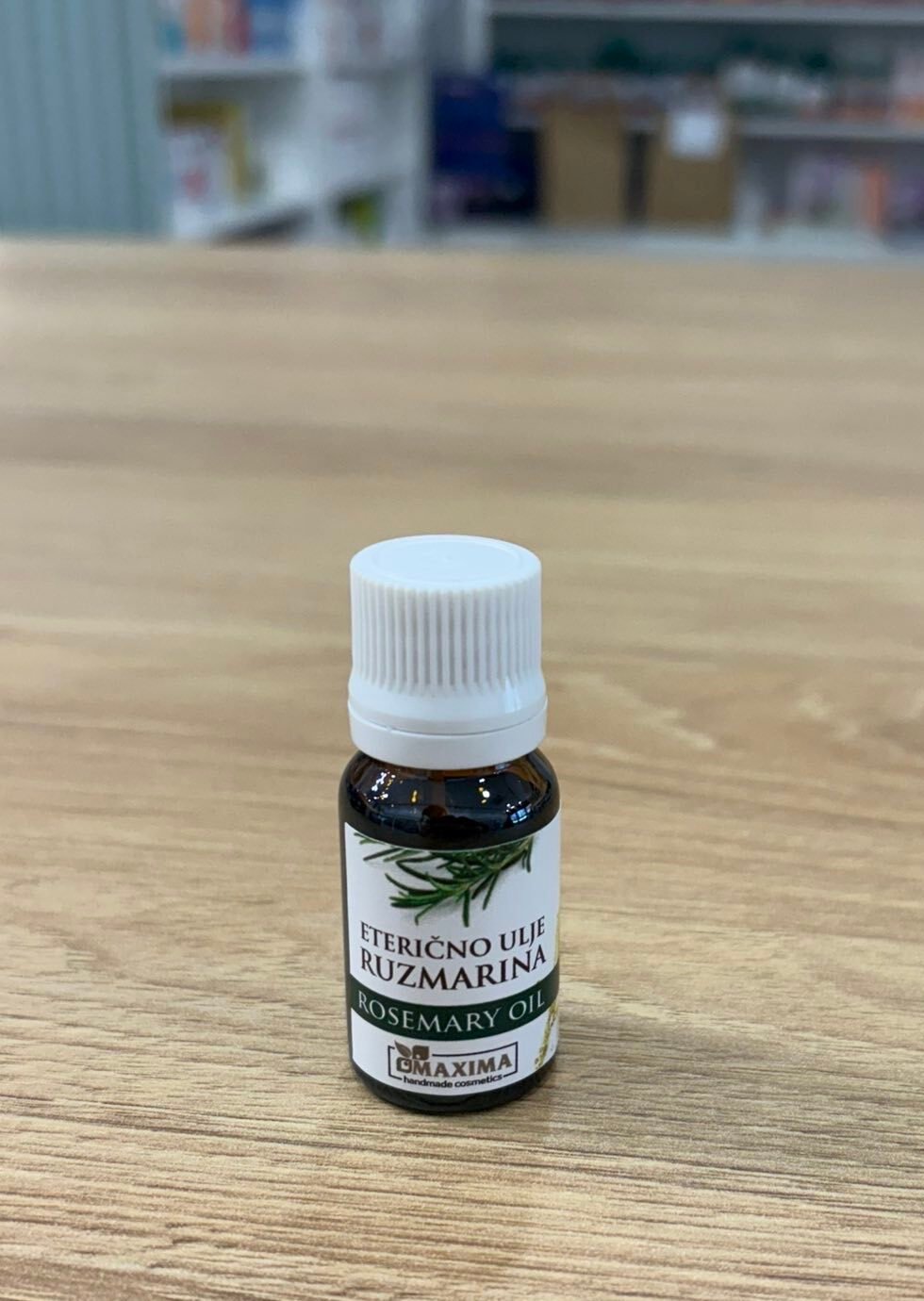 Eterično ulje ruzmarina dobija se destilacijom vodenom parom cvjetnih vrhova i listova biljke ruzmarin. Odlikuje ga intenzivna, aromatična i blago kamforasta nota. U aromaterapiji se često koristi za poboljšanje fokusa, mentalne jasnoće i smanjenje osjećaja umora. Takođe je cijenjeno u prirodnoj kozmetici zbog svojih tonizirajućih i pročišćavajućih svojstava, naročito u preparatima za njegu kože i kose, kao i za masažu.