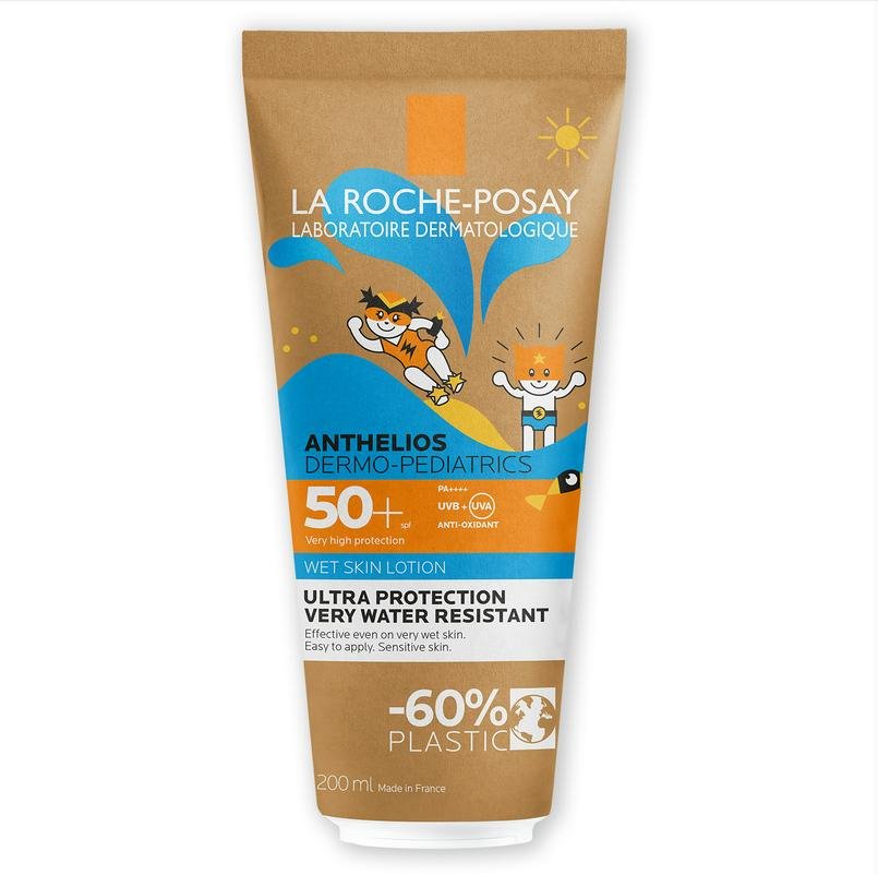 LA ROCHE-POSAY ANTHELIOS LOSION ZA ZAŠTITU OD SUNCA ZA DJECU SPF 50+ obezbjeđuje široki spektar veoma visoke zaštite (UVA+UVB) za osjetljivu dječiju kožu. Očuvan stepen zaštite čak i kad se nanosi na mokru kožu. Za osjetljivu dječiju kožu. Prikladno za kožu alergičnu na sunce. U sastavu se nalaze: XL PROTECT tehnologija, patentirana tehnologija filtera, pruža izuzetno visoku zaštitu od širokog spektra UVB/UVA zračenja i štiti od nastanka oštećenja uzrokovanih zagađenjem i infracrvenim zračenjem; glicerin koji povećava hidrataciju; wet skin tehnologija, hidrofobni kompleks koji na koži stvara vodootporan film. Upotreba: nanesite izdašnu količinu na cijelo tijelo. Nanesite proizvod za zaštitu od sunca neposredno prije izlaganja suncu. Ponovo nanesite na svaka 2 sata. Nemasna. Neljepljiva. Ne ostavlja bijele tragove kad se nanosi na mokru kožu.