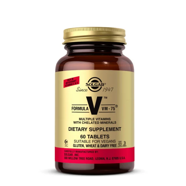 Solgar VM-75 je napredna multivitaminska formula koja sadrži visoke doze B vitamina, vitamina C i E, zajedno sa esencijalnim mineralima u helatnim (lako apsorbujućim) oblicima. Formulisan je kao sveobuhvatna nutritivna podrška za svakodnevno funkcionisanje organizma.