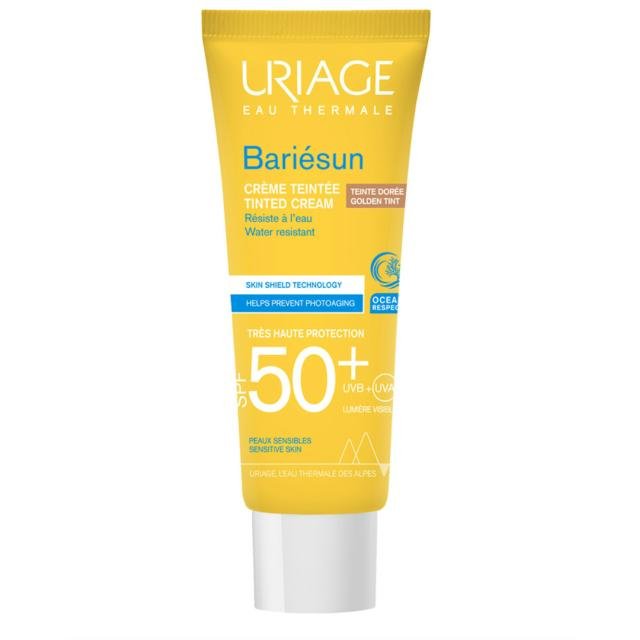 URIAGE BARIESUN GOLD, tonirana krema SPF50+ pruža veoma visoku zaštitu od sunca za osjetljivu kožu lica. Zahvaljujući najnovijem kompleksu filtera visokih performansi, ovaj fluid obezbjeđuje potpunu zaštitu kože lica od UVA i UVB zraka, slobodnih radikala, sprječavajući isušivanje kože. Ova lagana, nemasna i delikatno parfemisana tekstura garantuje koži prijatan osjećaj. Upotreba: Prije izlaganja suncu, nanijeti izdašnu količinu preparata na kožu i temeljno namazati oblasti koje su izložene suncu. Često ponavljati mazanje, naročito nakon znojenja, plivanja i brisanja kože.