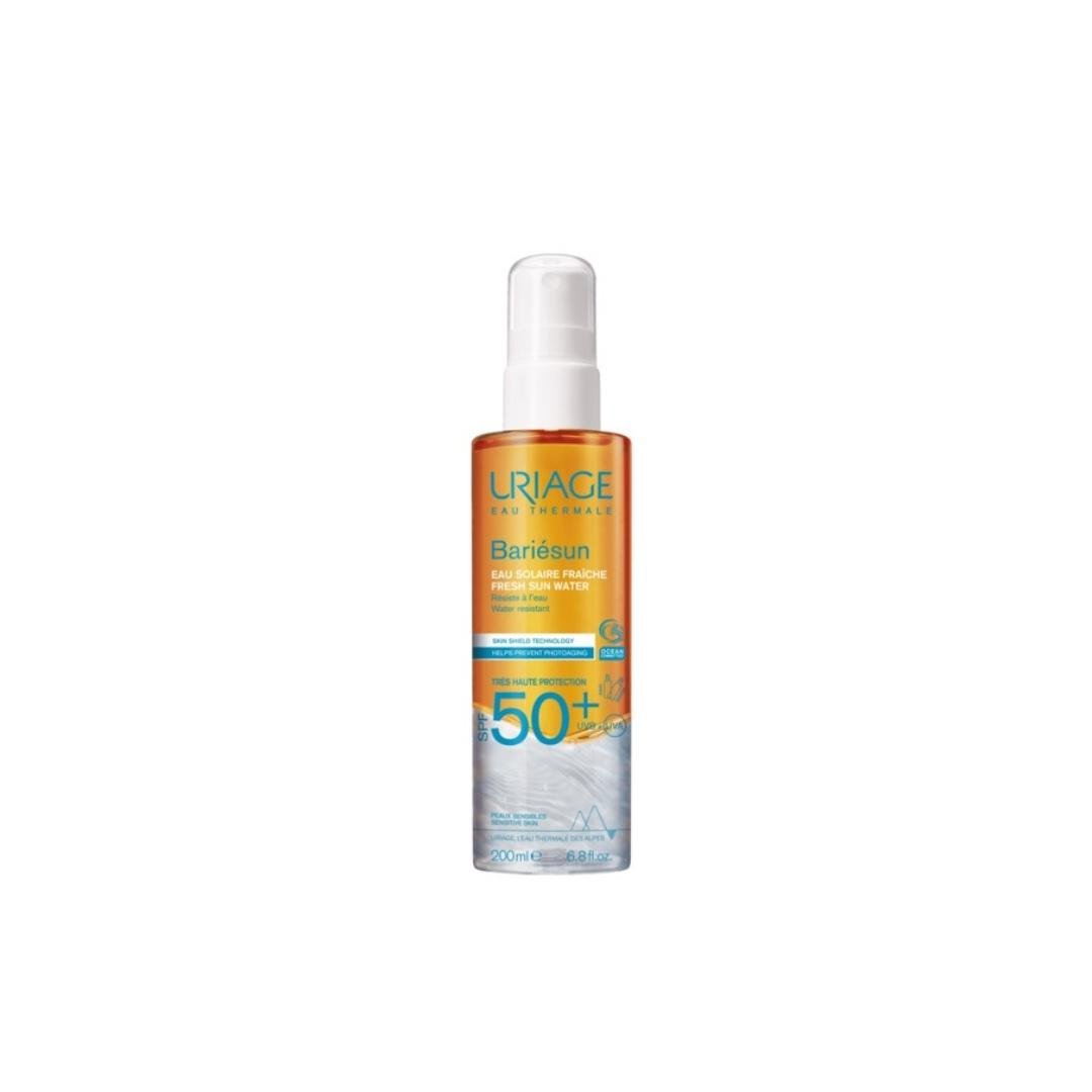 URIAGE BARIESUN, osvježavajuća voda SPF50+ pruža veoma visoku zaštitu od sunca za osjetljivu kožu. Za lice, tijelo, kosu. Prevencija fotostarenja kože. Najnovija generacija filtera pruža veoma visoku zaštitu kože i kose od UVA i UVB zraka i slobodnih radikala, sprječava isušivanje kože i kose. Upotreba: Promućkati i ravnomjerno nanijeti na kožu, kosu i lice. Često ponavljati nanošenje, naročito nakon znojenja, plivanja ili brisanja peškirom.