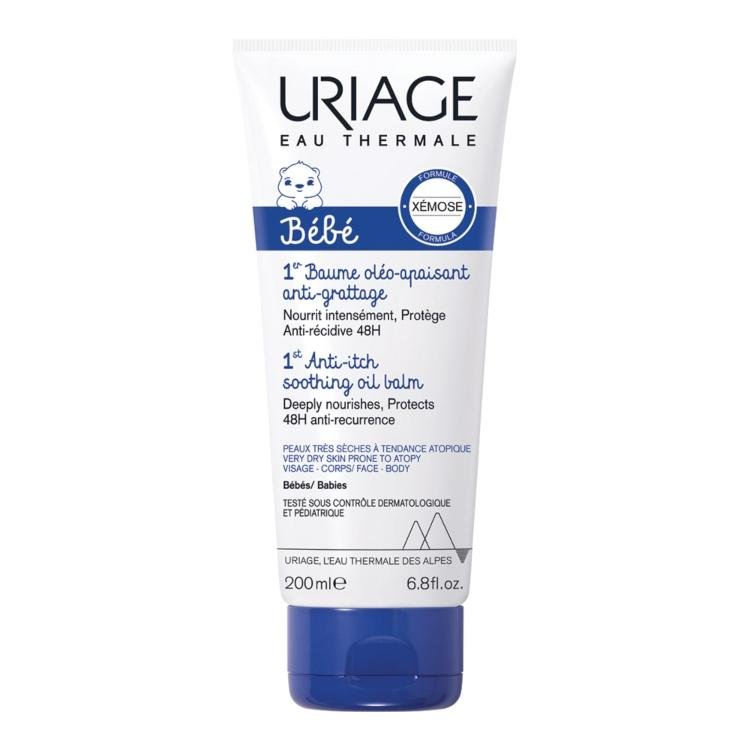 URIAGE BEBE, balzam, bogati emolijent teksture balzama koja prelazi u ulje. Za lice i tijelo. Za novorođenčad, bebe i djecu. Uriage termalna voda 10%: umiruje, hidrira, stvara filmogeni sloj, jača kožnu barijeru, ograničava bakterijsku adheziju i virulenciju. Uriage Bebe balzam odmah umiruje osjećaj svraba povezan sa suvoćom kože. Obogaćen illipe uljem ostavlja nemasni zaštitni film na koži za trenutnu udobnost i brzo oblačenje. Upotreba: Nanesite ujutro i / ili uveče na čistu kožu. Za najbolje rezultate nanesite balzam na kožu koja je još uvijek vlažna od kupanja.